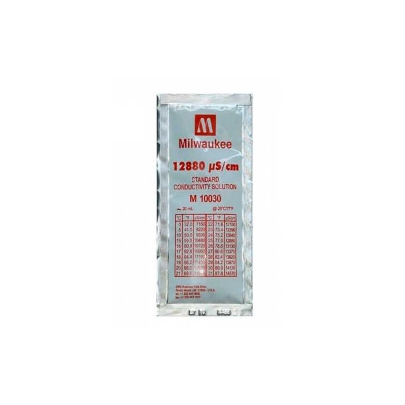 The Milwaukee M10030 calibration solution is sold in a single-use 20ml sachet.
