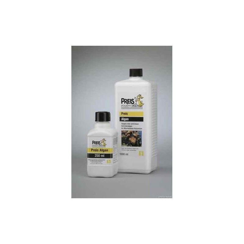 Grâce à Preis-Algan, vous retrouverez rapidement une eau d’aquarium propre. Après la cure d’Algan, tâchez d’enrayer les causes de cette pollution. Si l’eau de mer est très polluée, il est conseillé de la changer et d’utiliser le Sel de Mer Preis. Assurez également un courant suffisant dans le bassin. Au cas où vous ne relèveriez aucune trace de nitrate ou de phosphate dans l’eau de votre aquarium, il est conseillé de ne plus laver les filtres à action rapide, et d’éteindre l’écumeur pendant environ deux semaines. Cela entraînera la formation d’un groupe de bacteries qui combattent les algues rouges polluantes.